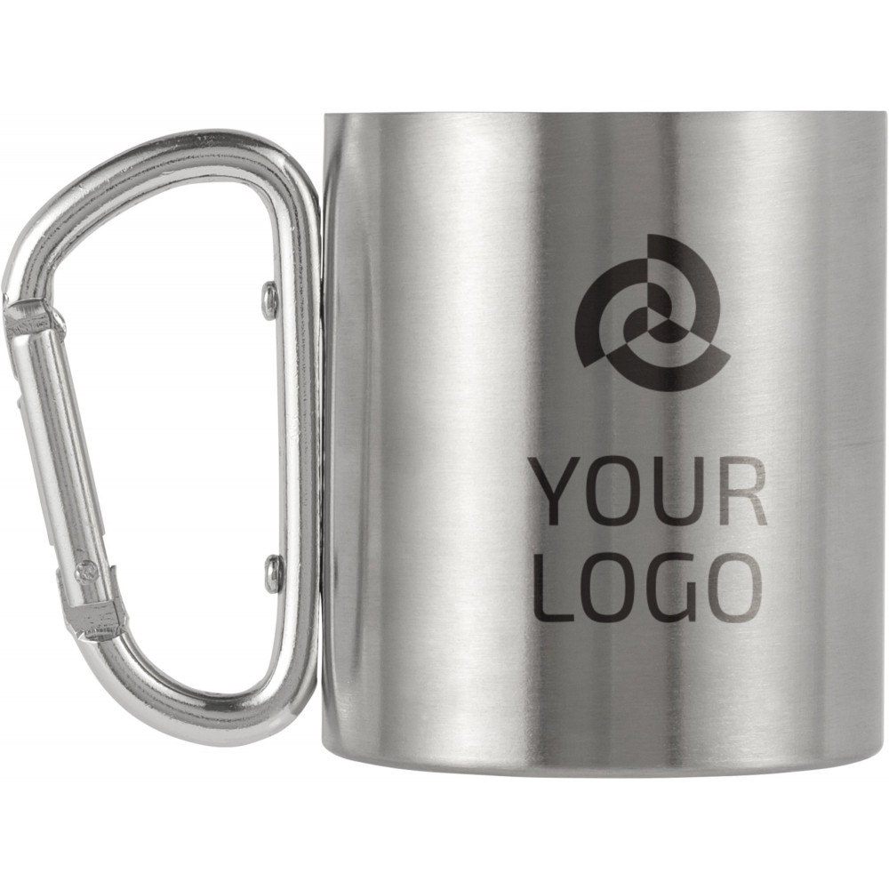 Duplafalú utazóbögre karabineres füllel. Űrtartalom: 185 ml. Rozsdamentes acél.