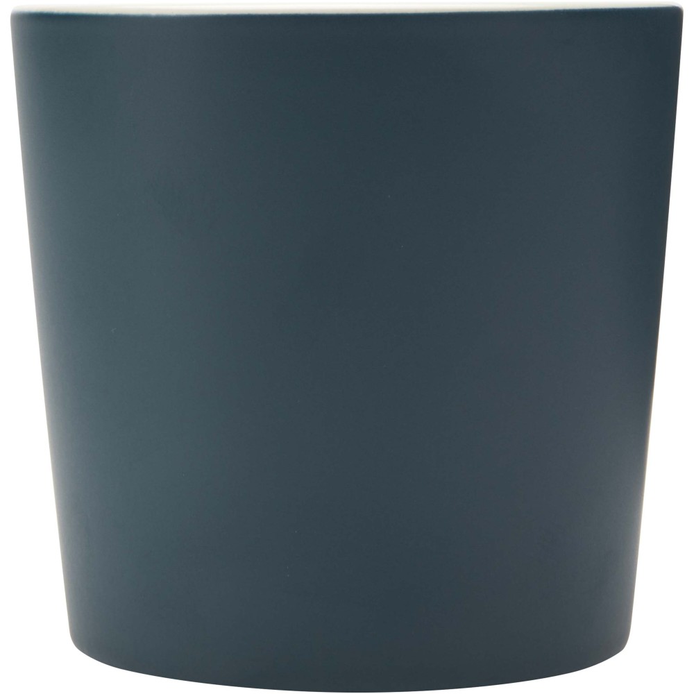 Kerámia bögre modern dizájnnal és matt felülettel. Nem szivárgásmentes. Szénsavas italokkal is használható. Mosogatógépben mosható és mikrohullámú sütőben történő melegítésre alkalmas. Űrtartalom: 370 ml. Újrahasznosított karton díszdobozban.