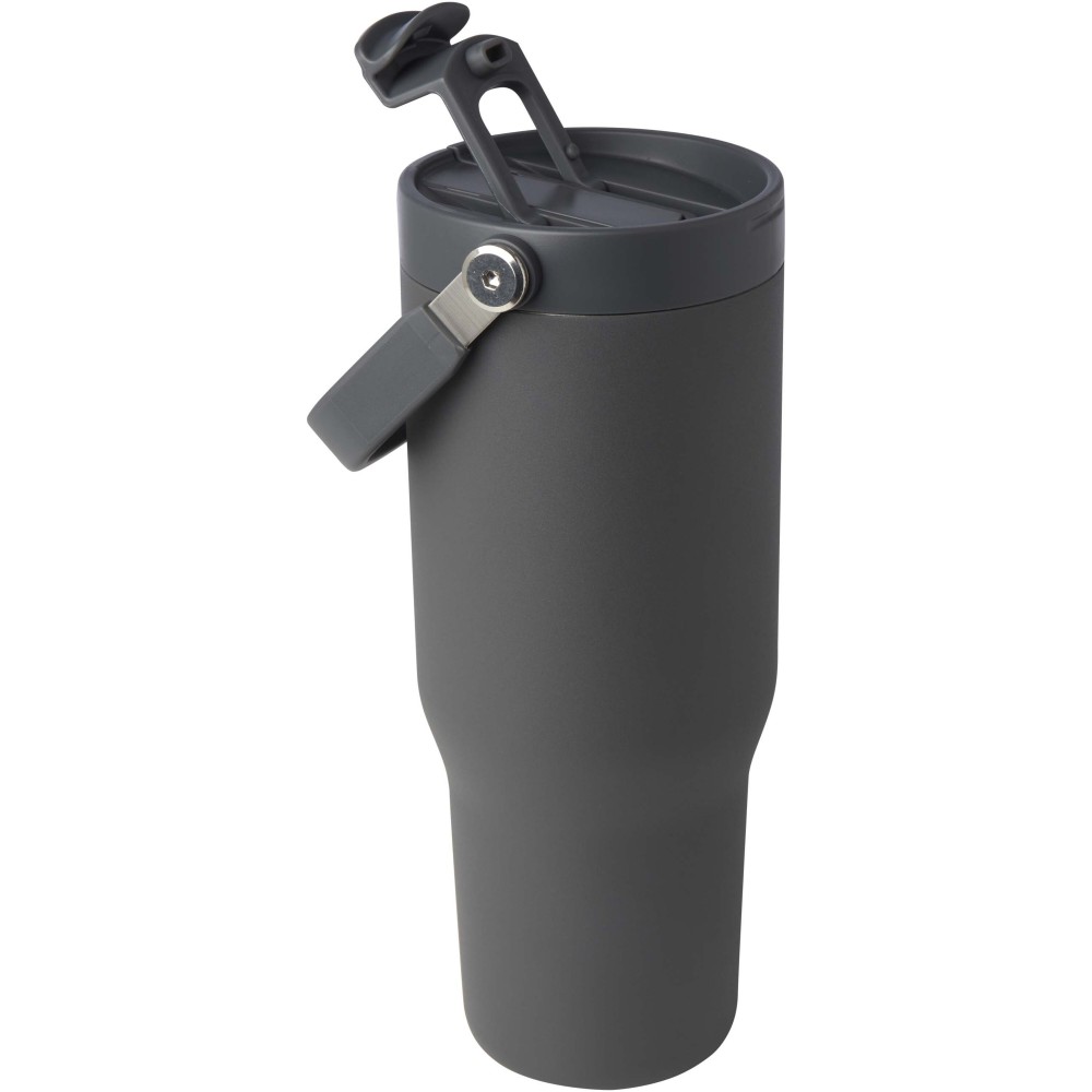 A Bronx 900 ml-es termoszbögre RCS tanúsítvánnyal rendelkező rozsdamentes acélból, dupla falú vákuumszigeteléssel és réz bevonattal készült. A tető kétfunkciós kialakítással rendelkezik: összecsukható ivószárral a kényelmes kortyoláshoz, valamint felpattintható nyílással és lehajtható fogantyúval az egyszerű hordozhatóság érdekében. A legtöbb autós pohártartóba illeszkedik. Újrahasznosított kartondobozban szállítjuk.