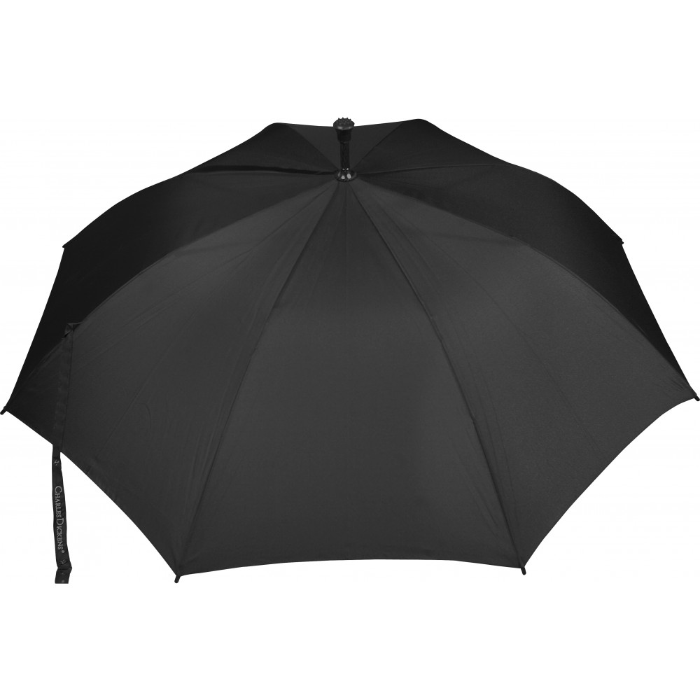 Charles Dickens automata esernyő és sétapálca. Üvegszálas váz, valódi bőr nyél, Charles Dickens logóval ellátott összefogópánt.