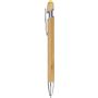 Bambusz golyóstoll krómozott fém részletekkel. Krómozott műanyag tollheggyel és fém klipsszel. Színes érintő a nyomógombon. Kb. 800 méter íráshossz. Kék tollbetéttel.