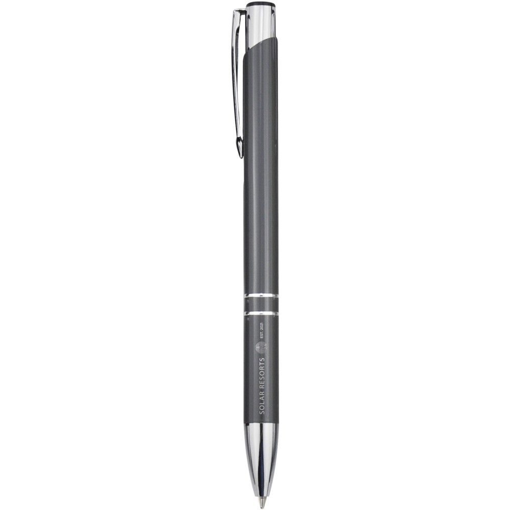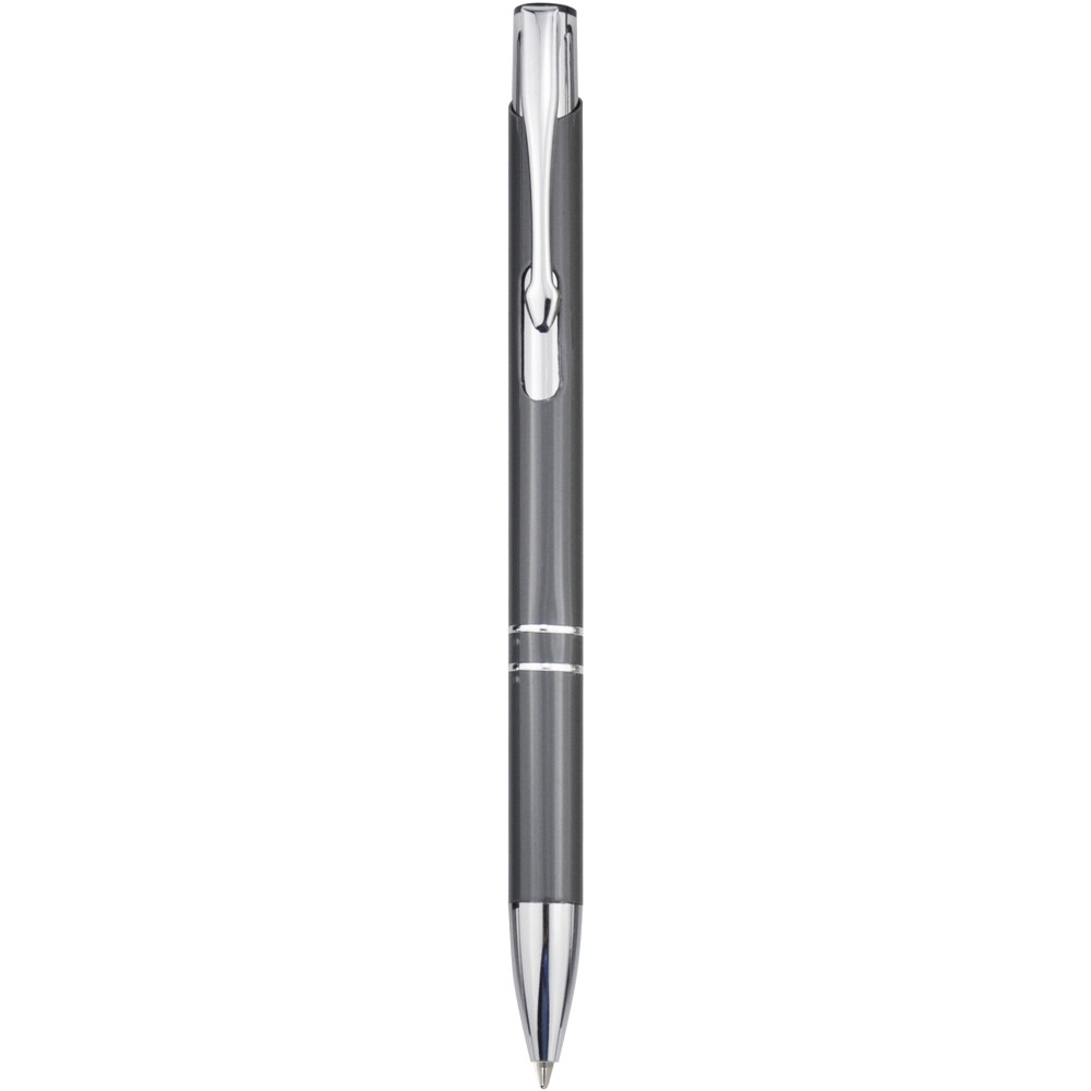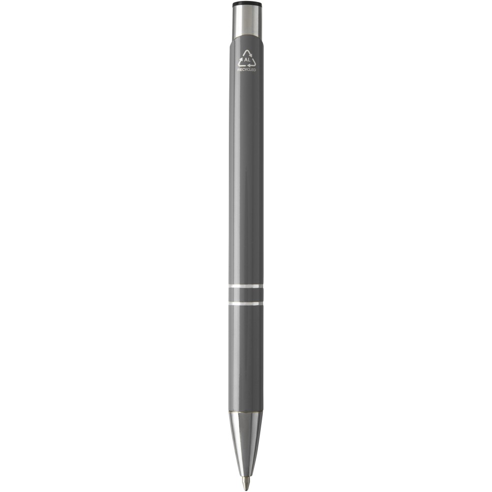 Újrahasznosított alumíniumból készült golyóstoll lakkozott, fényes felülettel és feltűnő króm részletekkel. Az újrahasznosított alumínium kevesebb energiát igényel, mint az alumínium nyersanyagokból történő előállítása, ami fenntarthatóbbá teszi a gyártást. Csökkenti a szemétlerakókba kerülő hulladék mennyiségét és segít a természeti erőforrások megőrzésében, az üvegházhatást okozó kibocsátás csökkentését célozva. Fekete tollbetéttel. Íráskapacitás: 600 méter. Újrahasznosított alumínium, ABS műanyag, vas.