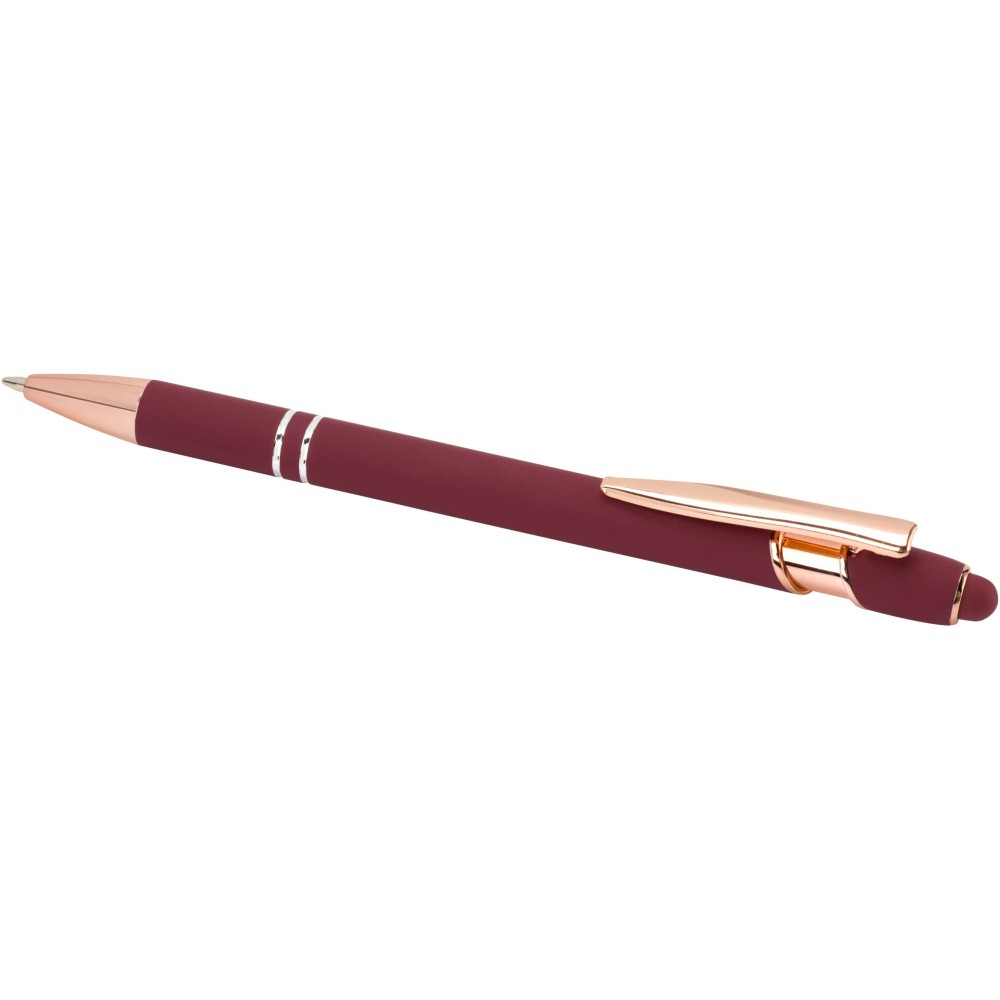 Nanna golyóstoll elegáns rózsaarany színben. A toll teste újrahasznosított alumíniumból, az érintőceruza pedig szilikonból készült, így érintőképernyős eszközökhöz is használható. Az újrahasznosított alumínium csökkenti a hulladéklerakók terhelését, segít megőrizni a természeti erőforrásokat, és célja az üvegházhatású gázok kibocsátásának mérséklése. Tinta színe: kék. Íráshossz: 800 méter. Tollhegy mérete: 1,0 mm.