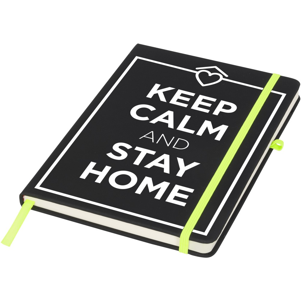 Puha felületű füzet színes gumipánttal, könyvjelzővel és tullhurokkal. 96 krémszínű vonalas lapot tartalmaz.
