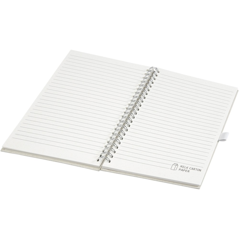 A5-ös méretű spirálfüzet 70 db 80 g/m2-es vonalas lappal, újrahasznosított tejesdobozokból (70%). A használt tejes kartondobozokat összegyűjtik, válogatják, feldolgozzák és papírrá alakítják, valóban hasznossá alakítva a hulladékot.