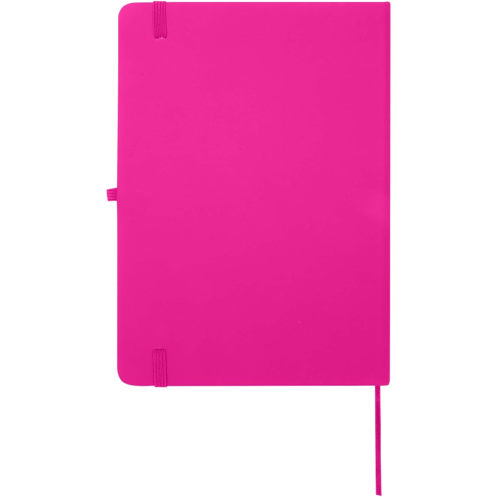 A Spectrum Plus A5 keményfedeles jegyzetfüzet lekerekített sarkokkal nemcsak az irodai mindennapok elengedhetetlen kelléke, hanem remek lehetőség márkád népszerűsítésére is. A jegyzetfüzet puha tapintású borítóval rendelkezik és 80 vonalas, krémszínű, 70 g/m2-es lapból áll, amely tökéletes gyors ötletek vagy hosszabb jegyzetek rögzítésére. A jegyzetfüzet tolltartó hurokkal, gumiszalagos záródással, könyvjelzővel és harmonikazsebbel van ellátva.