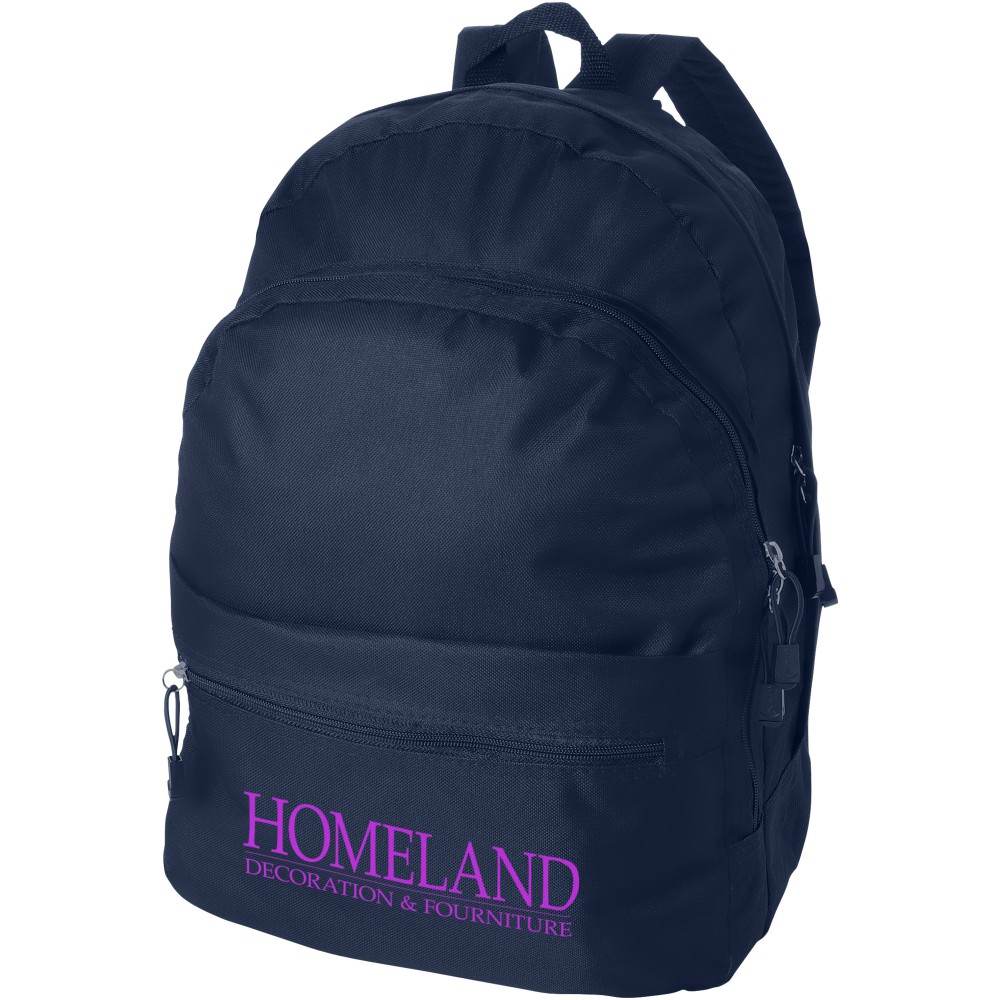 A kényelmes Trend hátizsák nyerő a promóciós hátizsákok között. A divatos kialakítású táska négy rekesszel rendelkezik: két cipzáras rekesszel, egy elülső cipzáras zsebbel és egy tépőzáras elülső zsebbel, így bőséges helyet kínál nagy és kis tárgyak tárolására egyaránt. A termék 600D poliészterből készült.