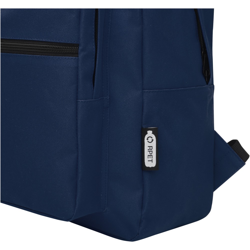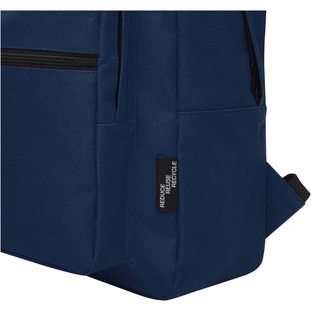 Hátizsák 100%-ban újrahasznosított műanyagból készült, amivel hozzájárulunk a műanyag hulladék csökkentéséhez. Állítható vállpántok, 2 cipzáras rekesz és egy első cipzáras zseb. Körülbelül 15 palack újrahasznosításából gyártott termék. RPET.