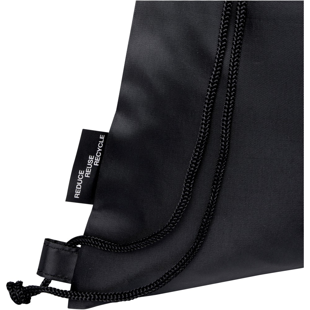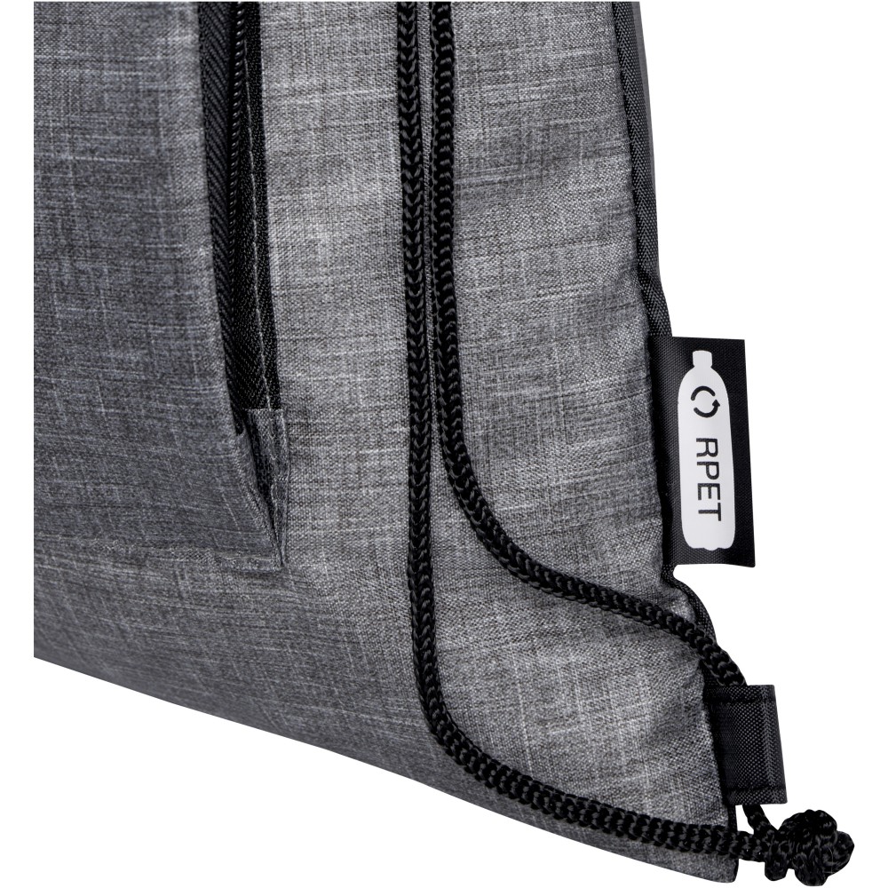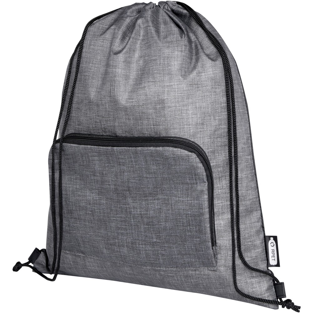 Az Ash összehajtható, újrahasznosított húzózsinóros táska egy cipzáras elülső rekesszel és egy cipzáras elülső zsebbel rendelkezik, amelybe a táska könnyen összecsukható a könnyű szállítás és tárolás érdekében.