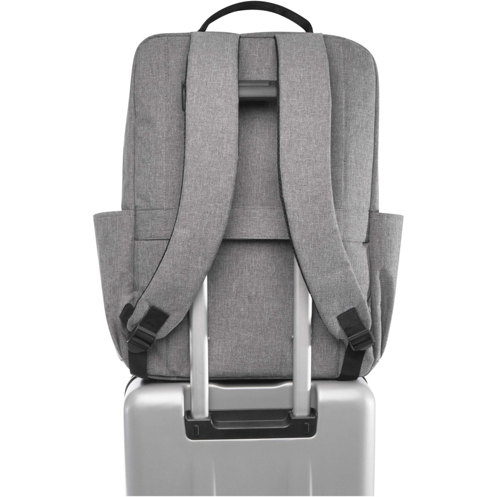 A Libra hátizsák GRS tanúsítvánnyal rendelkező újrahasznosított poliészterből, illetve RPET béléssel készült. 15?-os laptoprekesszel, külön párnázott tabletzsebbel és belső rendszerező zsebekkel rendelkezik. Külső részén számos zseb, párnázott, állítható vállpántok és egy bőröndpánt található. Teherbírás: akár 10 kg.