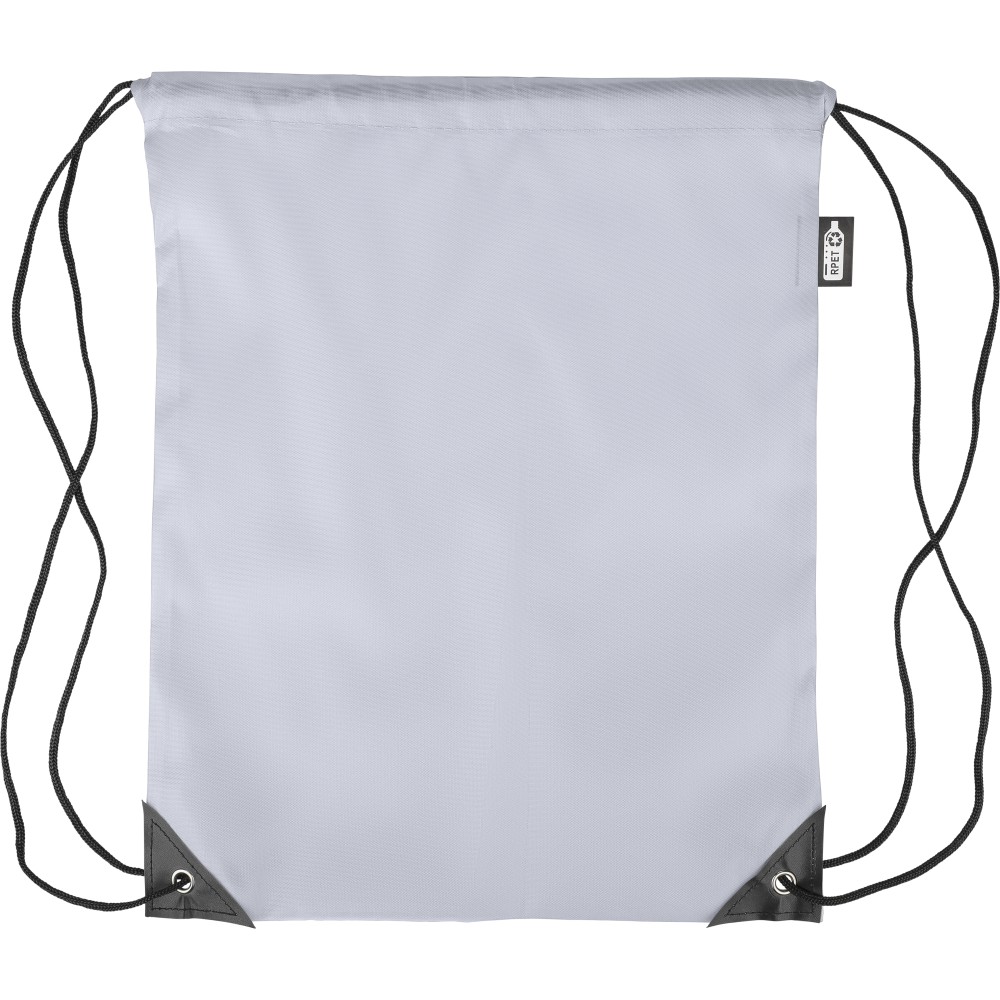Tornazsák 210D poliészter anyagból, fekete PU sarokerősítéssel az elején, és belső varrással. Fekete nylon húzózsinórral, egy rekesszel. Űrtartalom: 5 liter, teherbíró képesség: 7 kg. rPET címkét tartalmaz.
