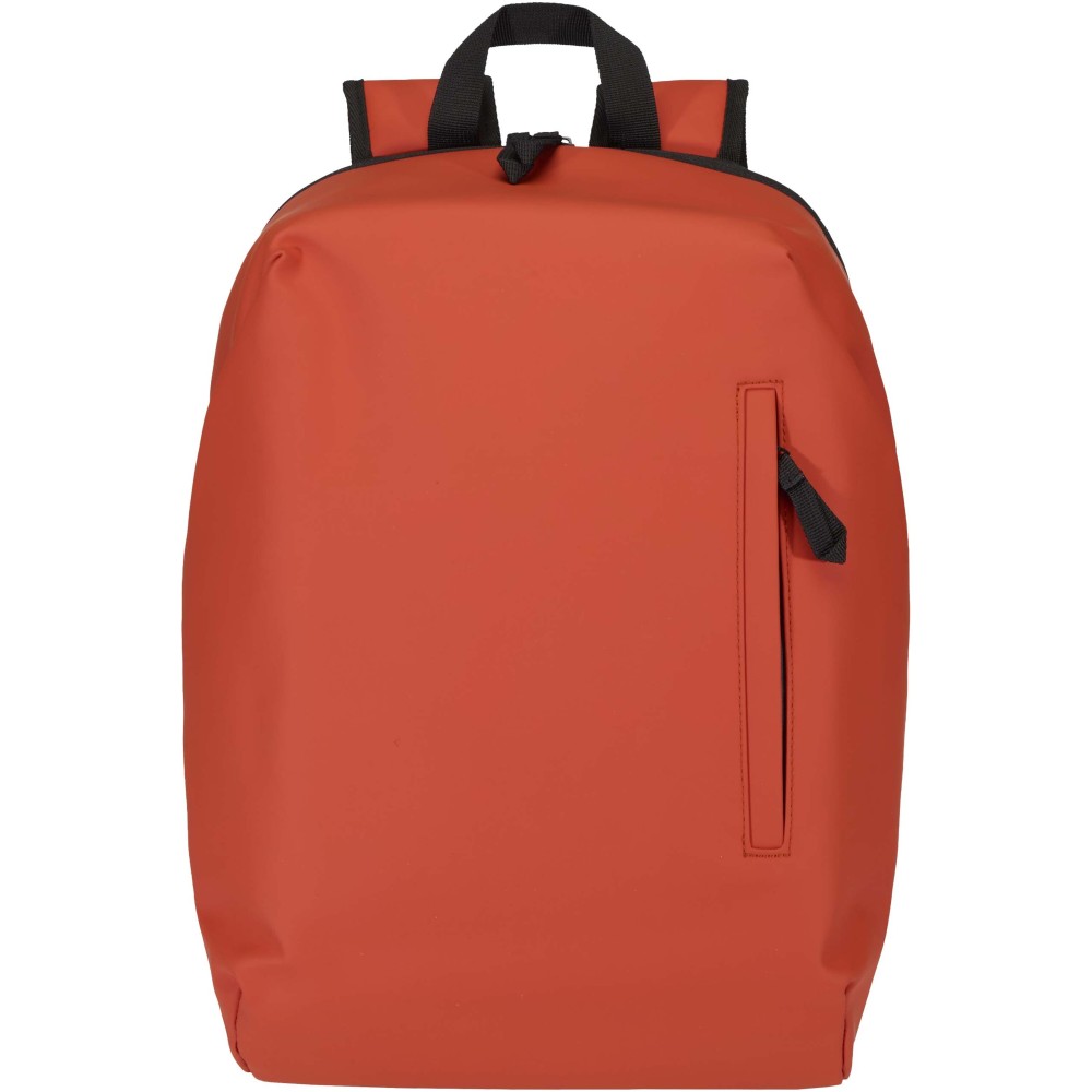 A prémium minőségű, GRS tanúsítvánnyal rendelkező újrahasznosított PU bőrből készült, színben passzoló RPET béléssel ellátott 15?-os biztonsági hátizsák garantálja az értékek védelmét és szárazon tartását útközben. A termék hátulról hozzáférhető laptoprekeszel, két letisztult oldalsó zsebbel, valamint egy vízálló cipzárral felszerelt elülső zsebbel rendelkezik. A légáteresztő hátlap biztosítja az egész napos kényelmet, így ideális választás ingázáshoz, utazáshoz vagy városi használatra. Űrtartalma: 18 liter.