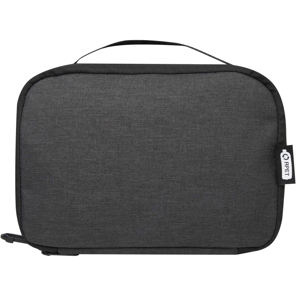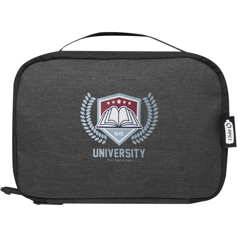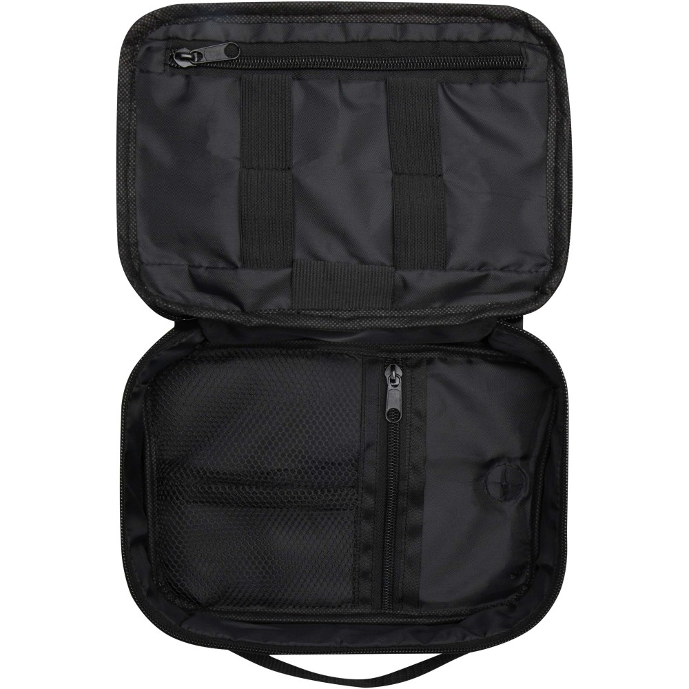 A Ross GRS újrahasznosított tech-táska ideális az állandóan úton lévők számára, és rendezetten tarthatja a powerbankokat, töltőkábeleket vagy bármilyen más elektronikus kiegészítőt. Több zsebbel, elasztikus hurokkal és egy kábelátvezető résszel rendelkezik, amely lehetővé teszi a powerbank tárolását, miközben a telefont tölti. Egy műanyag karabinerrel is rendelkezik egy másik táskához való rögzítéshez. Űrtartalom: 1 liter.