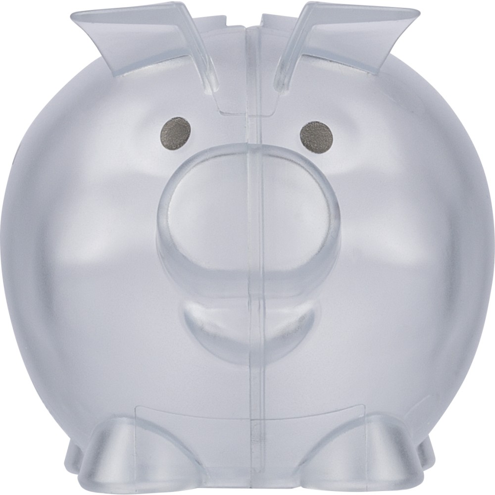 Újrahasznosított PS műanyagból készült, malacpersely. A hátoldalon recycled (újrahasznosított) alapanyagra utaló logó található.