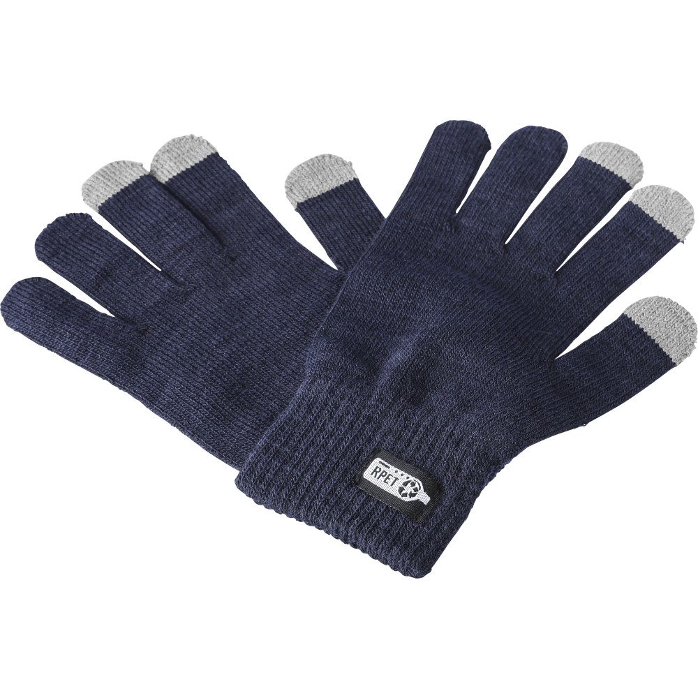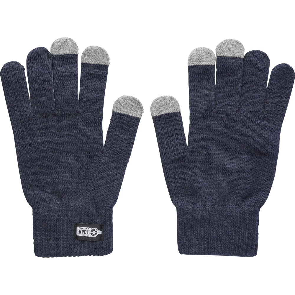 rPET érintőképernyős kesztyű három ujján vezetőképes bevonattal a képernyőhasználathoz. Kívül rPET címkével.
