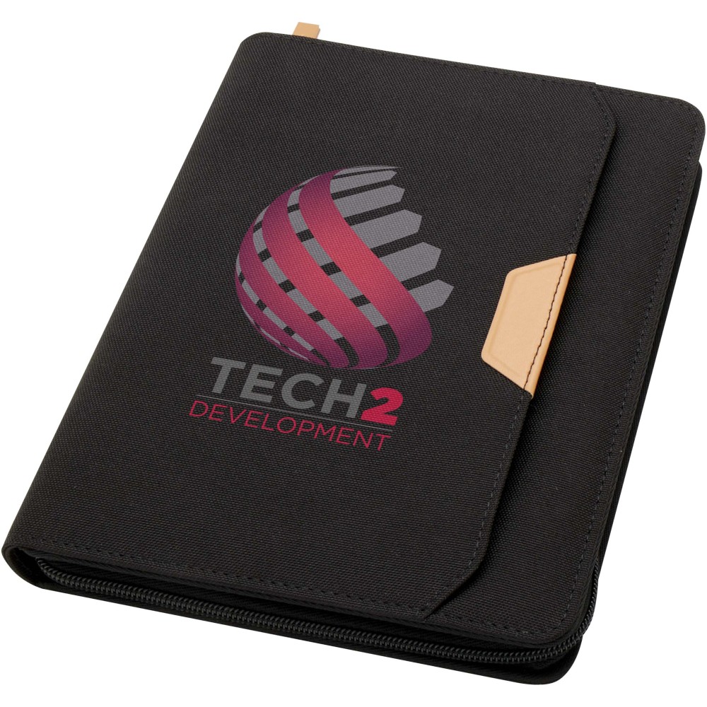 A Nomumi A5 portfólió lekerekített sarkú, újrahasznosított műanyagból készült, praktikus irodai alapdarab. 64 db krém színű, 80 g/m2 vonalas lapot tartalmaz, cipzáros záródással, tollhurokkal és egy zsebbel rendelkezik.