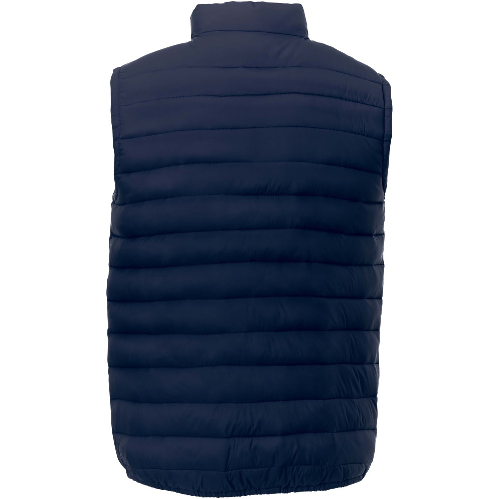 A Pallas férfi újrahasznosított, szigetelt mellény a stílus és a funkcionalitás tökéletes keveréke. Maradjon védett a hidegtől és a széltől a szélvédő segítségével, amely állvédőt tartalmaz. A mellény mellzsebe cipzárral záródik, biztonságos helyet ad a szükséges dolgoknak. A rugalmas szegély stílusos, miközben biztosítja az illeszkedést. 38 g/m2-es matt cire 380T nylon szövetből készült, a mellény elegáns és időtálló külsőt kínál. A töltet és a bélés műszálas, műpehely szigetelésből áll, amely meleget biztosít anélkül, hogy a kényelmet feláldozná.