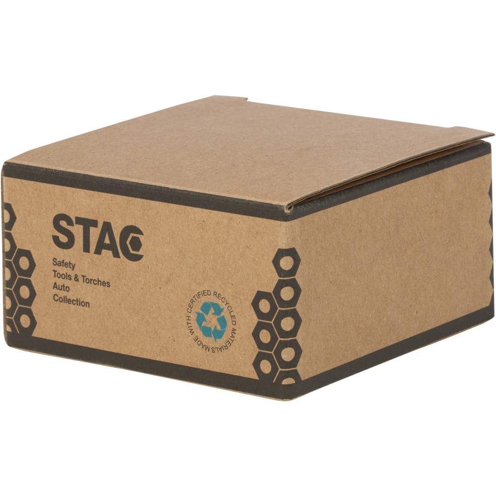 3 méteres mérőszalag övcsipesszel és poliészter csuklópánttal. Centimétert és hüvelyk egységeket tartalmaz. A tok 21% RCS tanúsítvánnyal rendelkező újrahasznosított műanyagból és 4% újrahasznosított TPE-ből készült. A Recycled Claim Standard (RCS) a termék újrahasznosított tartalmát a teljes ellátási láncban ellenőrzi. Fenntartható forrásból származó STAC díszdobozba csomagolva.