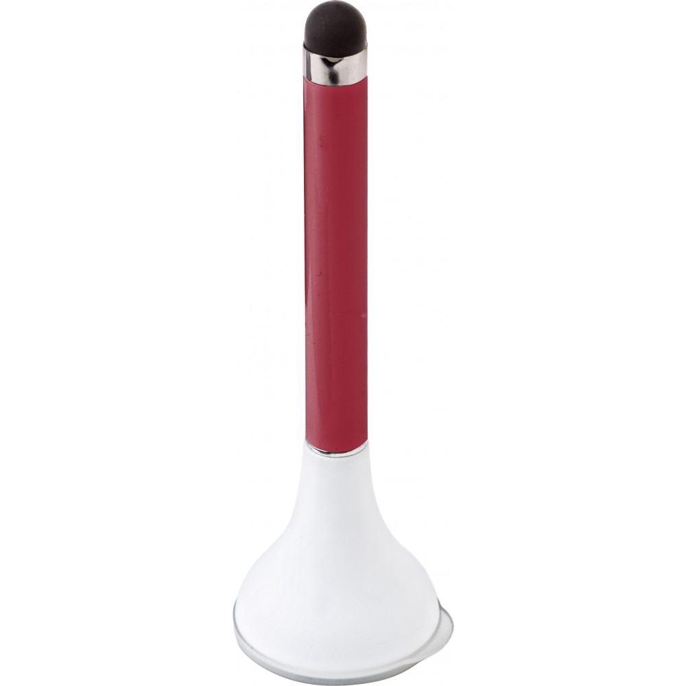 Műanyag golyóstoll monitortisztítóval, kék tollbetéttel, piros