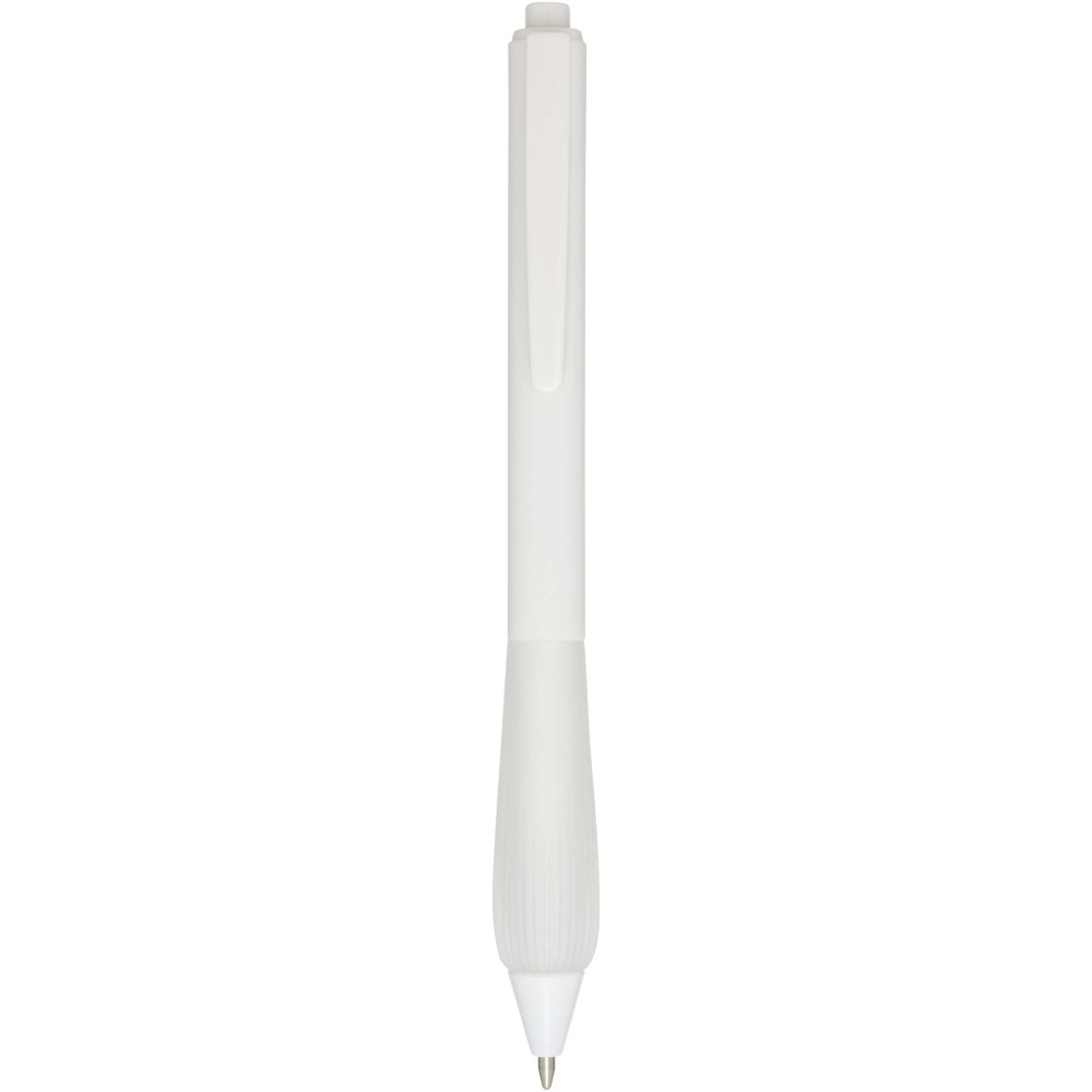 Újrahasznosított műanyag golyóstoll gumírozott tolltesttel és TPR anyagból készült fogórésszel. Fekete tollbetéttel. Írási hossz: 1000 méter. Hegyméret: 1,0 mm.