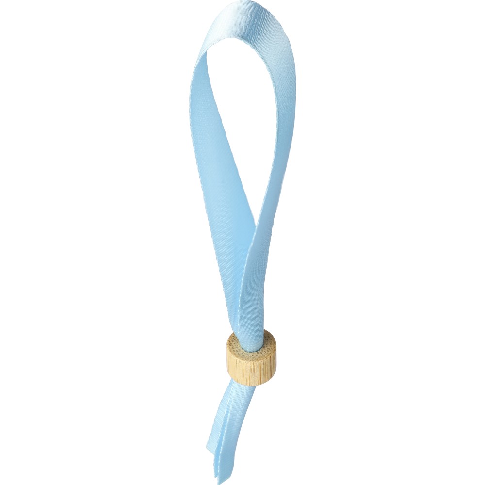 300D rPET karszalag bambusz hengerzárral. Hosszúság: 34 cm, szélesség: 1.5 cm.