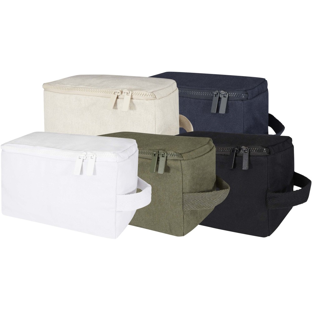 Piperetáska 500 g/m2 újrahasznosított pamutból és poliészterből, tágas fő rekesszel, biztonságos cipzáras záródással és több belső zsebbel, amely ideális piperecikkek tárolására. Sokoldalú kialakításának köszönhetően kisebb tárgyak - például zoknik vagy töltők - rendszerezésére is kiváló, így a csomagok rendezetten tarthatók. A táska Cyclo újrahasznosított szálakat tartalmaz, amelyek előválogatott hulladékból készülnek, és ennek megfelelően alakul a fonal színe is. Ezek a szálak nemcsak a primer nyersanyagok iránti igényt csökkentik, hanem elköteleződést is mutatnak a körforgásos szemlélet iránt, elősegítve a hulladékcsökkentést és a zárt rendszerű gyártást. Minden táskához tartozik egy Aware nyomkövető is, amelynek QR-kódja révén nyomon követhető a termék eredete és útja, ezáltal fokozva az ellátási lánc átláthatóságát, és erősebb kapcsolatot teremtve a felhasználó és a termék gyártási folyamata között.