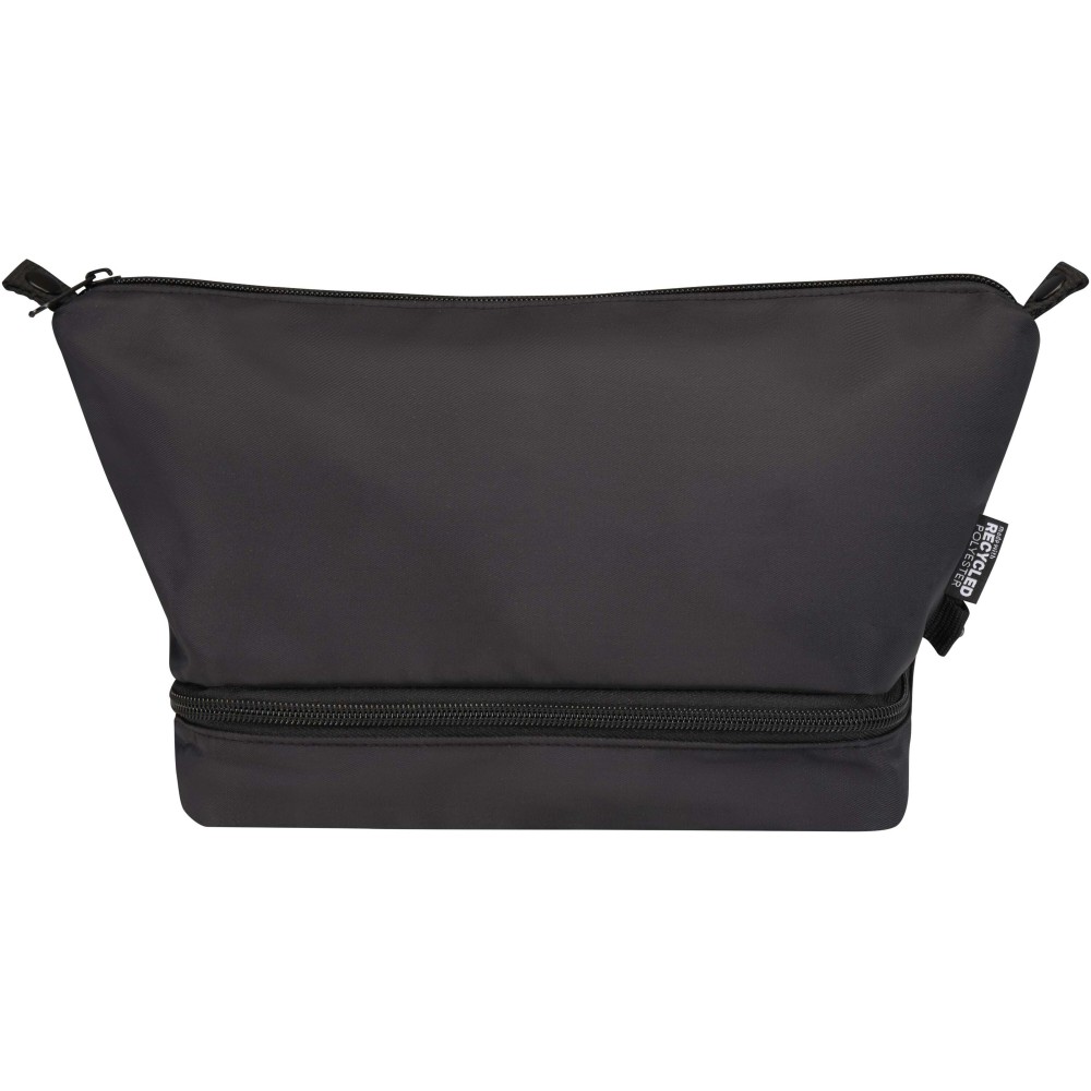A Trip Aware® újrahasznosított utazó piperetáska kompakt, merev kialakítású, utazás közben a személyes tárgyak rendezett tárolására tervezve. Tartós 290D twill poliészterből készült, kötött hátoldallal és RPET 210D/PU béléssel, átlátható elrendezéssel és praktikus rekeszekkel. Fő rekesze belső cipzáras zsebet tartalmaz a kisebb tárgyak számára, míg kagylószerűen nyíló alsó rekesze elkülöníti az alapvető holmikat a könnyebb hozzáférés és a jobb rendszerezettség érdekében. Minden táska Aware® nyomkövetővel érkezik, amely QR-kód segítségével lehetővé teszi a termék eredetének és útjának nyomonkövetését, növelve az ellátási lánc átláthatóságát és a kapcsolatot a termék gyártási folyamatával. Űrtartalom: 6 liter.