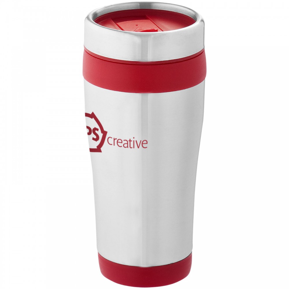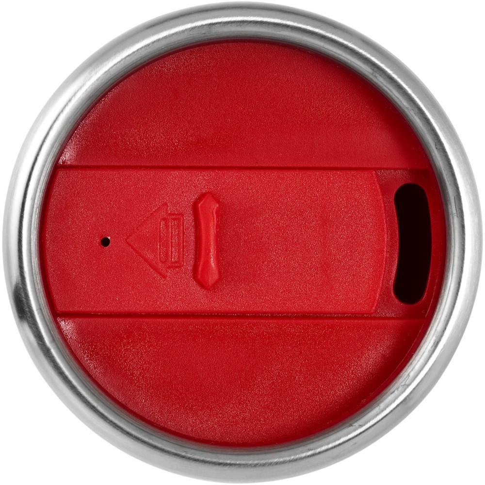 Duplafalú bögre rácsavarható tetővel és elcsúsztatható nyílással. A rozsdamentes acél és a műanyag kombinációja rendkívül erőssé, korrózióállóvá és könnyen tisztíthatóvá teszi a poharat. Nem szivárgásmentes. Szénsavas italokkal is használható. Mosogatógépben nem mosható és mikrohullámú sütőben történő melegítésre nem alkalmas. Űrtartalom: 470 ml.