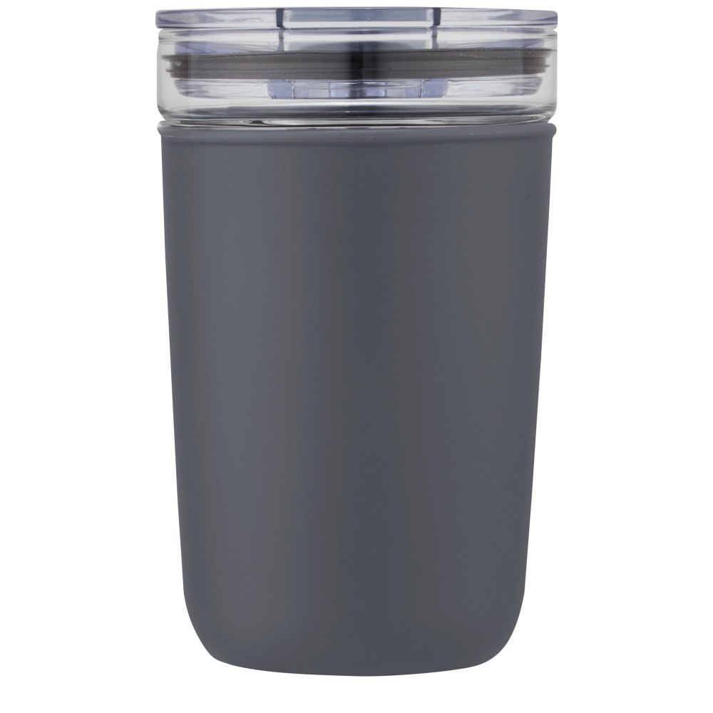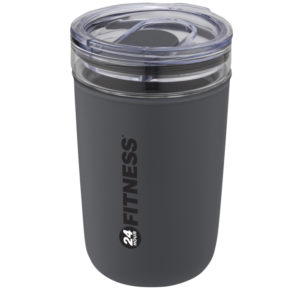 Újrahasznosított műanyag tokkal védett üvegpohár. A pohár 100%-ban tartós boroszilikát üvegből készült, amely megőrzi az ital frissességét, és nem tartalmaz semmilyen káros vegyszert. BPA-mentes, a német élelmiszerbiztonsági törvény (LFGB) szerint tesztelt és jóváhagyott. Ftaláttartalomra tesztelve és jóváhagyva a REACH előírásai szerint. A pohár a legtöbb kávéfőző alá illeszkedik. Nem szivárgásmentes. Szénsavas italokkal nem használható. Mosogatógépben mosható, de mikrohullámú sütőben történő melegítésre nem alkalmas. Űrtartalom: 420 ml. Újrahasznosított karton díszdobozban.