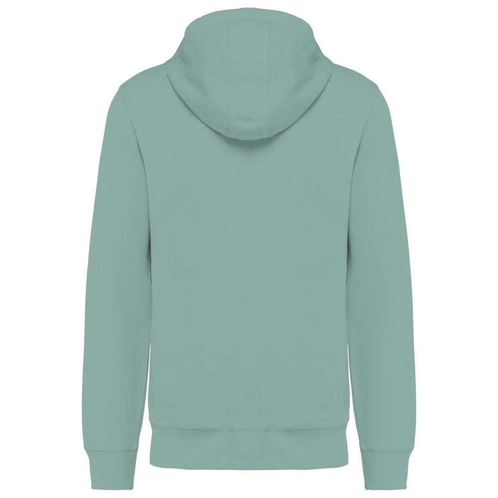 80% organikus pamut / 20% újrahasznosított poliészter. Oxford szürke 75% bio pamut / 25% újrahasznosított poliészter. Francia frottír LST (Low Shrinkage Terry). Szövet: enzimes mosás. Karcsúsított szabás. 2 elülső zseb. Bordázott kézelő, bordázott szegély és bélelt kapucni. Fém véggel ellátott húzózsinór. Félhold alakú kivitel a nyakkivágásnál, hogy megkönnyítse a díszítéshez való hozzáférést belülről. Twill szalagos nyak és V alakú betét a nyakkivágásnál. Nincs márkacímke a nyakon, csak méretcímke a dekorációhoz való könnyebb hozzáférés érdekében. OEKO-TEX N CQ1007/7 STANDARD 100 tanúsítvánnyal rendelkezik. IFTH.