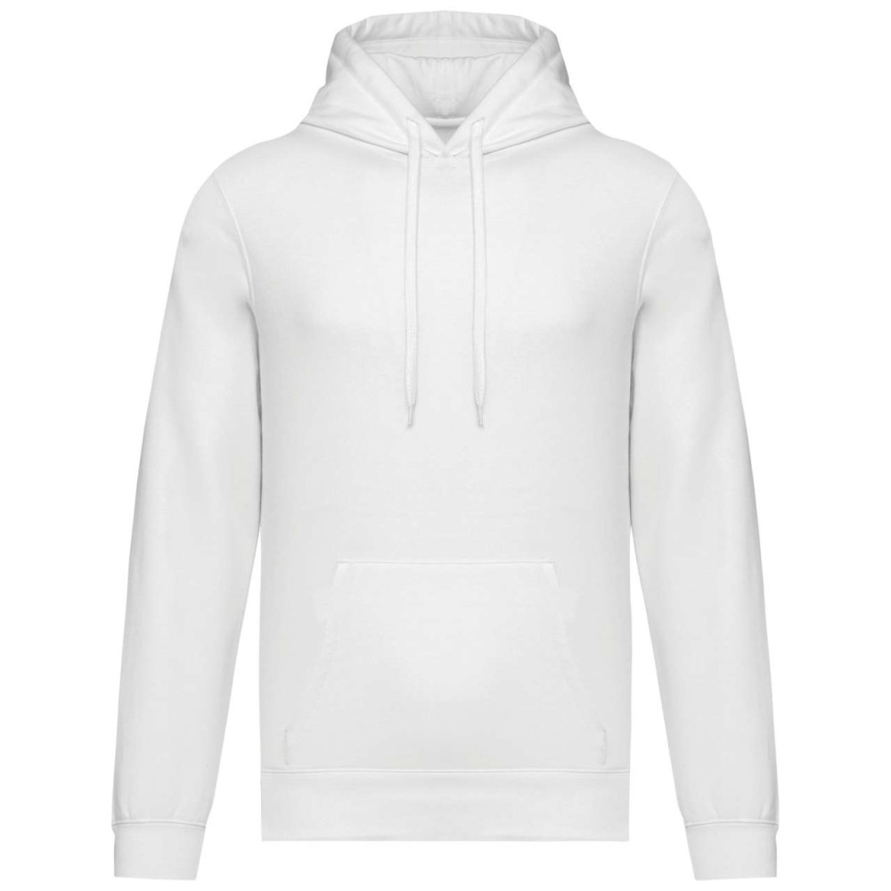 50% gyűrűs fonású pamut / 50% újrahasznosított poliészter, fésült pamut. Egyenes szabású, vágott és varrott. 1x1 bordás kötés a nyakkivágás, a mandzsetta és az alsó szegély jobb megjelenése érdekében. Kenguruzseb. Policotton dzsörzé bélésű kapucni lapos húzózsinórral. Színben illeszkedő dzsörzé szalagos belső a nyakkivágásnál. Csak méretcímke márkajelzés nélkül.