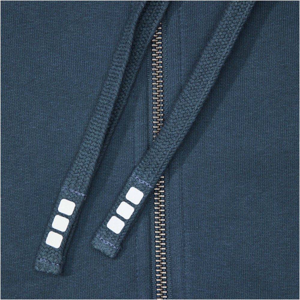 Normál szabásvonal. 2x2-es bordás oldalpanel, ujj- és derékpasszé. Kenguruzseb. Kapucniállító húzózsinór (kivéve gyerek modell). Bélelt kapucni. Saját anyagából készült félholdas betét a nyaknál. Szatén szegély a nyakvonalban. Kontrasztos színű halszálkamintás szalag a kapucniban. Hátul tónusos logónyomat. Antikolt fém fűzőlyuk-gyűrű gravírozott logóval. 80% pamut és 20% poliészter, kötött, belül bolyhozott. 300 g/m2.