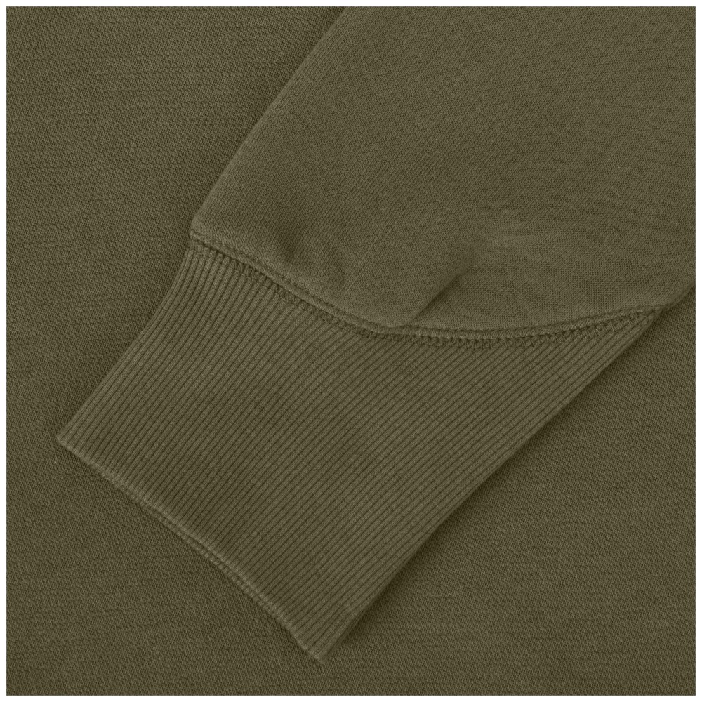 Lapos kötésű, bordás oldalsó panelek. Lapos kötésű bordás V-betét elöl középen. Lapos kötésű bordás mandzsetta V-alakkal. Lapos kötésű, bordás alsó szegély. Húzózsinór a kapucniban. Kenguru zseb. Félhold betét a nyaknál. Egyszeres jersey kötésű bélés a kapucni belsejében. Gravírozott, antikolt, ezüst fűzőlyukak. Szatén nyakszalagerősítés. Kontrasztos színű halszálkamintás szalag. Bolyhos belső felület a puha, meleg és kényelmes érzésért. Kötött: 80% BCI pamutból és 20% poliészterből, 300 g/m2.