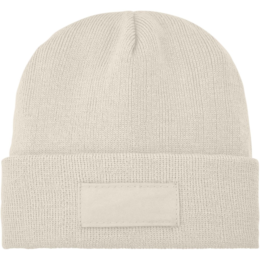1x1-es kötésű 100% akril sapka 100% poliészter emblémázható címkével. A címke mérete: 75 x 30 mm.