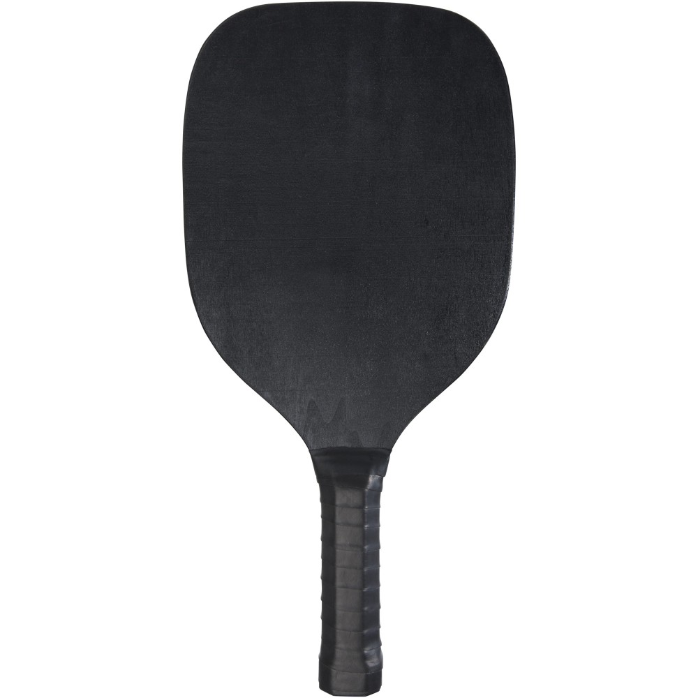 Ez a bükkfából készült ütőkészlet sok szórakozást és mozgást biztosít kettesben a strandon, a parkban vagy a kertben. Az ütők 40 x 20 x 0,7 cm méretűek és feketére festettek, így nagy felületet biztosítanak bármilyen logó nyomtatásához. A fogantyúk PU szalaggal vannak bevonva, így maximális fogást biztosítanak az intenzív játék során. A készlet 2 db PP anyagból készült labdával van kiegészítve, és hálós poliészter tárolótasakba van csomagolva, melynek mérete 45 x 26 cm.
