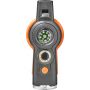 Többfunkciós túlélőeszköz. Az eszköz a következőket tartalmazza: síp, iránytű, hőmérő (° C és ° F), lámpa, tükör, nagyító és zsinór biztonsági zárral. ABS műanyag.
