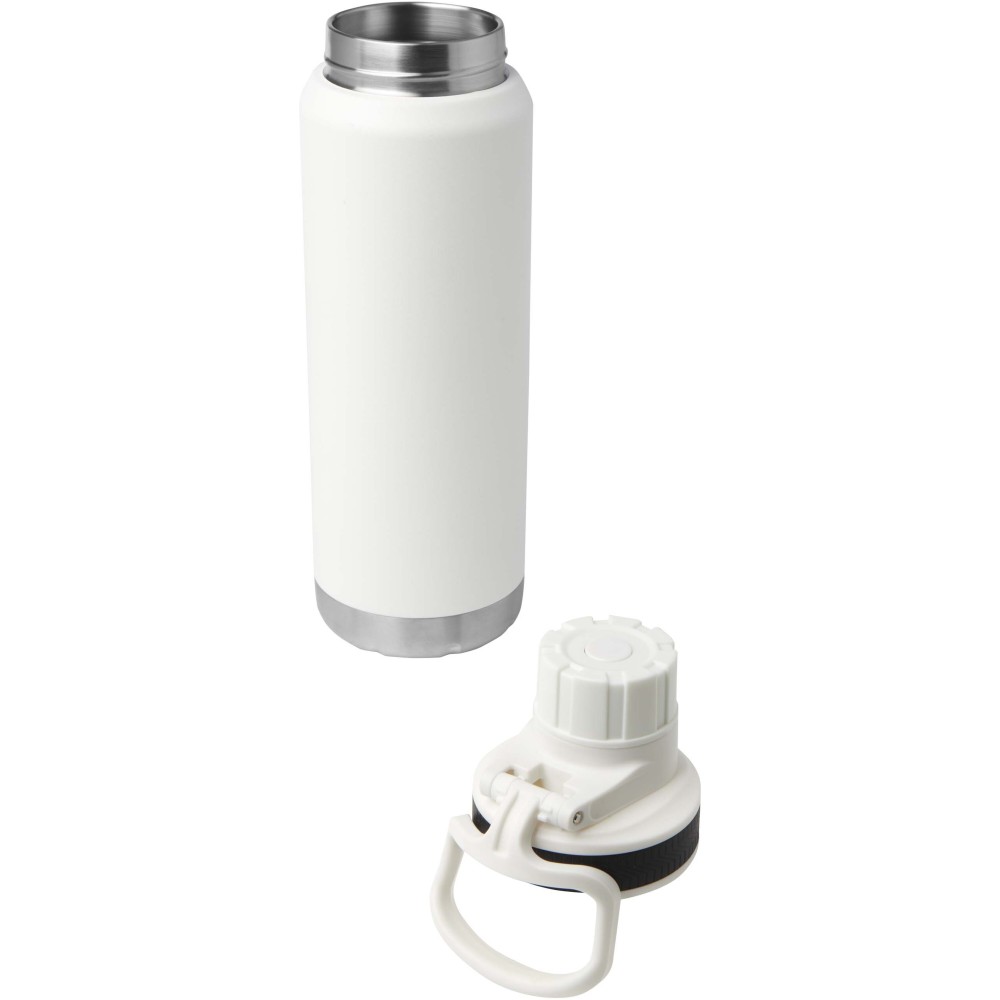 RCS tanúsítvánnyal rendelkező, rozsdamentes acélból készült, dupla falú, rézvákuum-szigetelésű kulacs csavaros, szivárgásmentes fedéllel. Széles nyílása megkönnyíti a töltést és a tisztítást, a fedélbe integrált hordozófül pedig praktikus szállítást biztosít. Szénsavas italokhoz is alkalmas. Külső felületén tartós porszórt bevonat található. Újrahasznosított karton díszdobozban kerül átadásra. Űrtartalom: 700 ml.