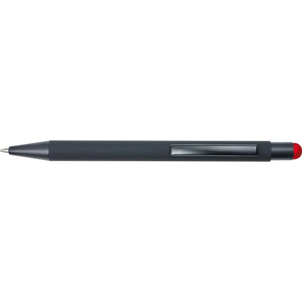 Golyóstoll színes érintővel, kék tollbetéttel és színes belső felülettel. ABS műanyag és alumínium.