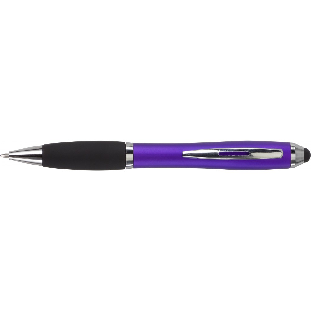 Érintős golyóstoll fekete tollbetéttel. A tetején lévő gumi segítségével érintőképernyős eszközökön használható.