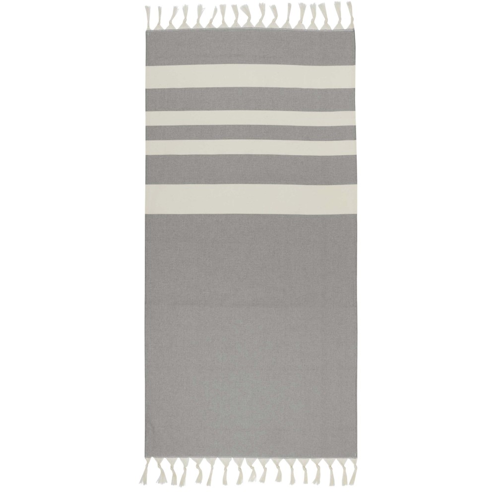 Az Anders hammam törölköző luxus kényelmet nyújt nagy méreteivel (147 x 75,5 cm), biztosítva a megfelelő takarást, akár a medence mellett pihensz, akár a tengerparton töltöd a napot. A törölköző mindkét végén elegáns bojtokkal van díszítve, anyaga 30% pamut, 35% GRS tanúsítvánnyal rendelkező újrahasznosított pamut és 35% GRS tanúsítvánnyal rendelkező újrahasznosított poliészter. 180 g/m2.