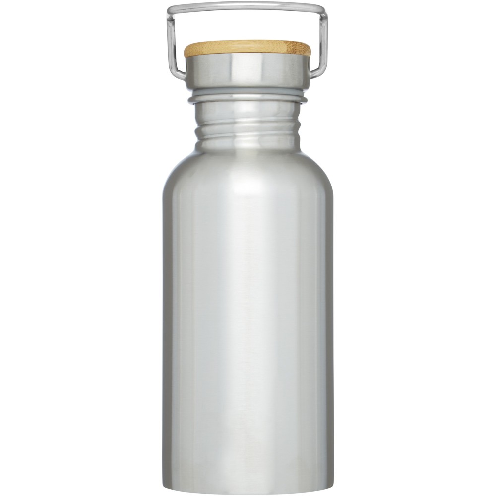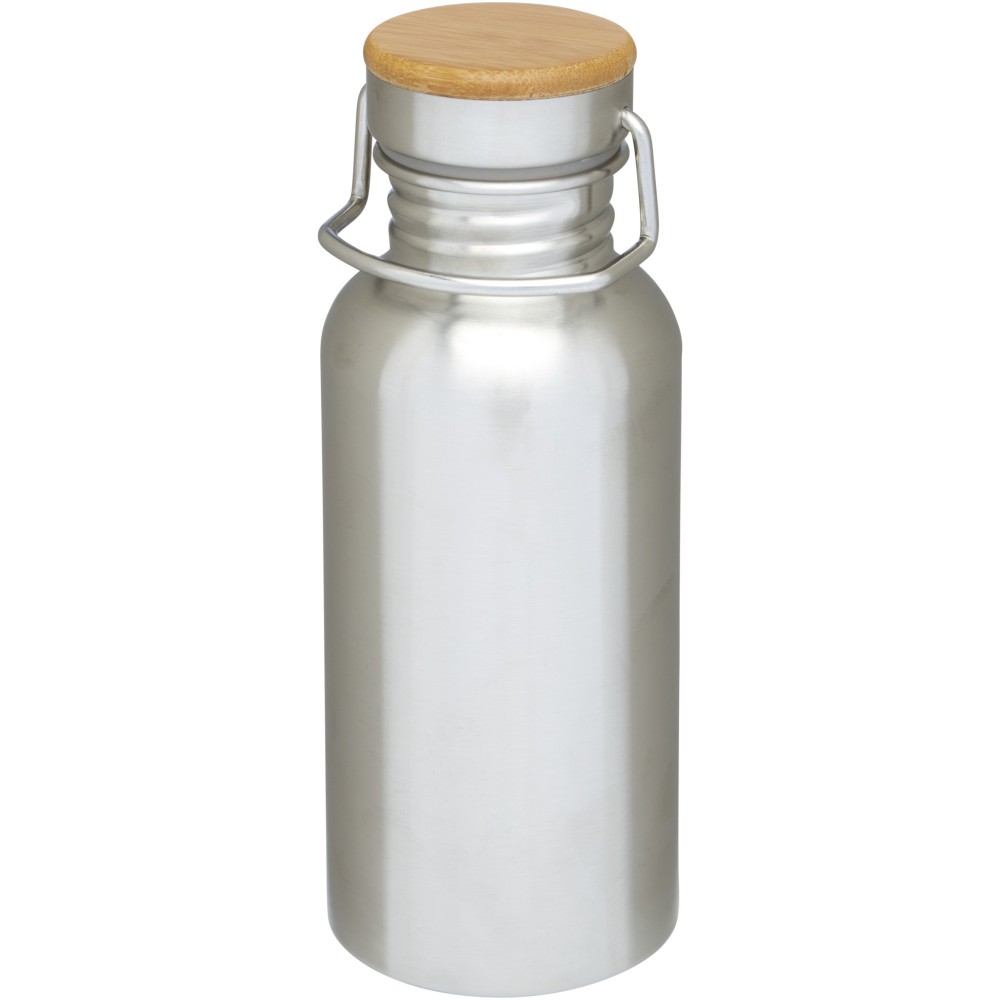 Egyfalú rozsdamentes acél palack csavaros tetővel. A fedélen bambusz rátét, valamint egy fül a könnyű hordozhatóságért. Szivárgásmentes. Szénsavas italokkal nem használható. Mosogatógépben nem mosható és mikrohullámú sütőben történő melegítésre nem alkalmas. Űrtartalom: 550 ml. Csomagolása Avenue díszdoboz. Rozsdamentes acél, bambusz.