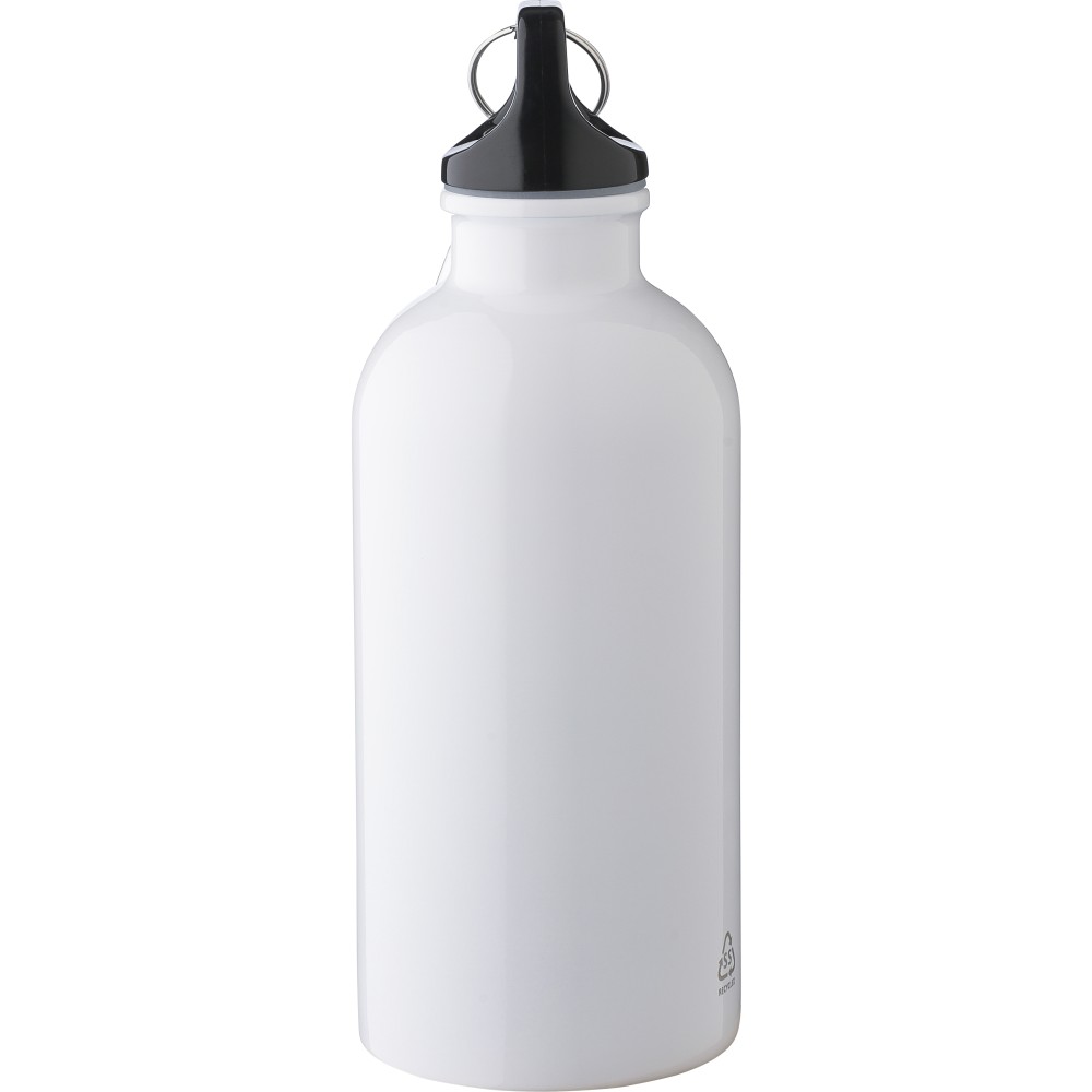 Újrahasznosított rozsdamentes acélból készült 400 ml-es szimplafalú kulacs PP kupakkal és alumínium karabinerrel. Az újrahasznosított anyagra utaló logó a palackra van gravírozva. Mosogatógépben nem tisztítható.